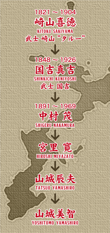 老年期に泊村から山原"ヤンバル"(沖縄本島北部)に転居し、中村茂らに「手」を継承した。
